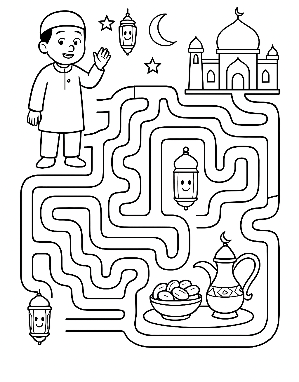 Un enfant en tenue traditionnelle commence le parcours, et doit rejoindre une mosquée
